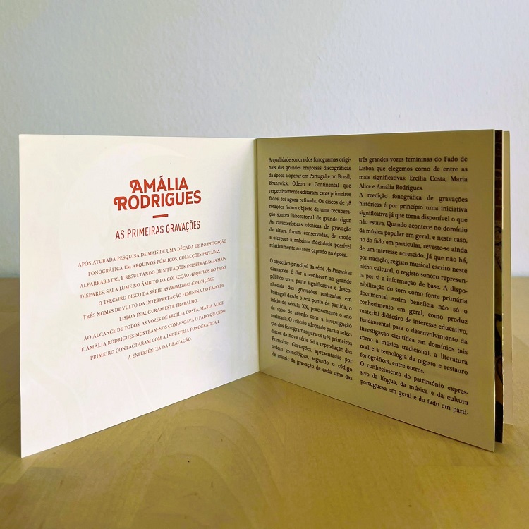 Amália Rodrigues com os primeiros fados e canções por ela gravados, no Brasil e em Portugal. As primeiras dezasseis faixas reportam-se aos fonogramas gravados no Rio de Janeiro pela editora Continental, em Agosto e Setembro de 1945 com acompanhamentos de formação variável, nem sempre indicados do modo mais preciso nos discos originais: com a Orquestra Portuguesa de Guitarras, dirigida por Fernando Freitas, com apenas viola nos cantares flamencos Olhos Verdes e Los Piconeros, e com piano ainda que discreto a acompanhar Fernando Freitas à guitarra e Gonçalves Dias à viola nos fados Ai Mouraria, Sardinheiras, Maria da Cruz e Saudades de Ti. As quatro últimas faixas reportam-se a dois pares de fados gravados em duas sessões de gravação para a Melodia já em Lisboa em 1951 e 1952, ainda antes de Amália começar a gravar com a Valentim de Carvalho em Julho de 1952.