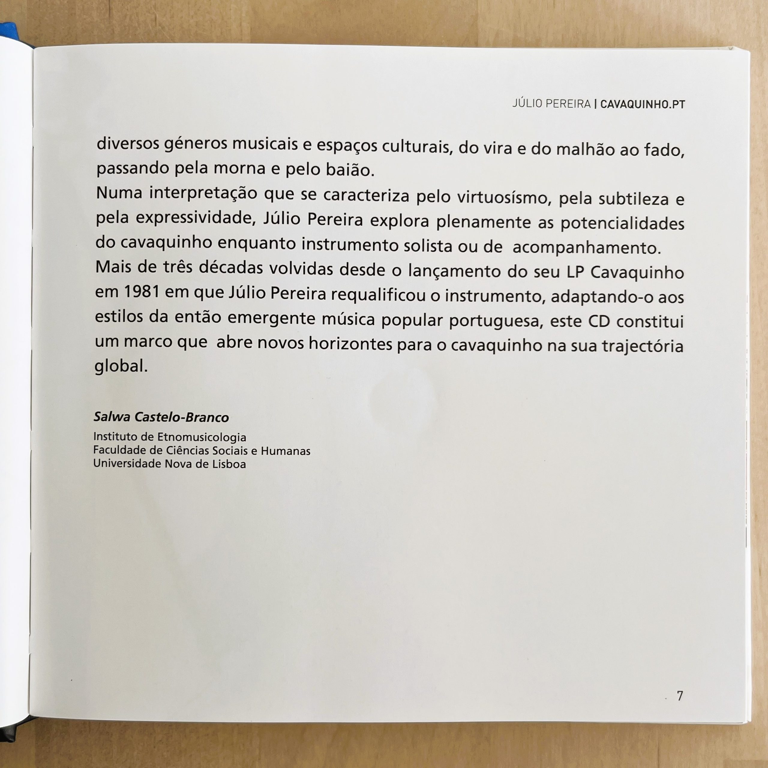 Para além de ser um produto autónomo de criação musical, que se basta a si próprio, CAVAQUINHO.PT inclui um livro sobre os tempos, modos e lugares em que o pequeno instrumento se foi revelando.